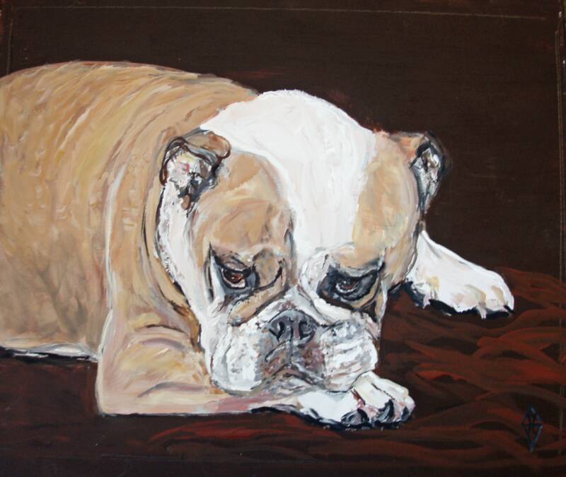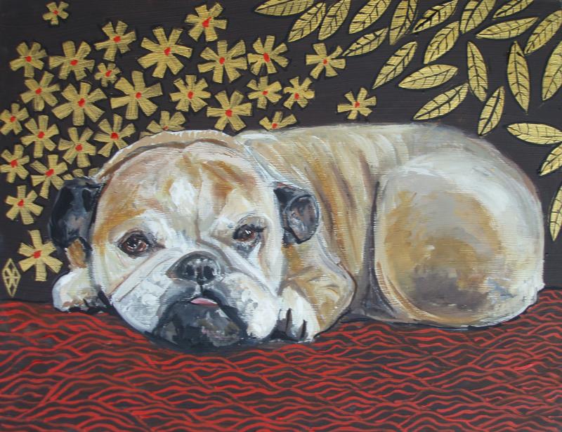 Bulldog,English,American,dog portrait,Judy Henn,Lambertville,NJ,contemporary art,gifts,Robins Egg Gallery,commission