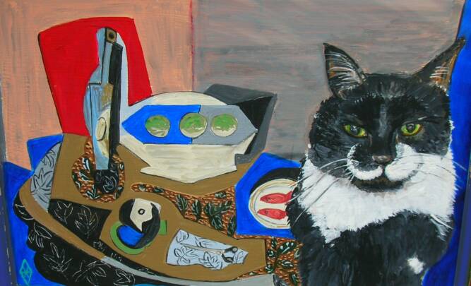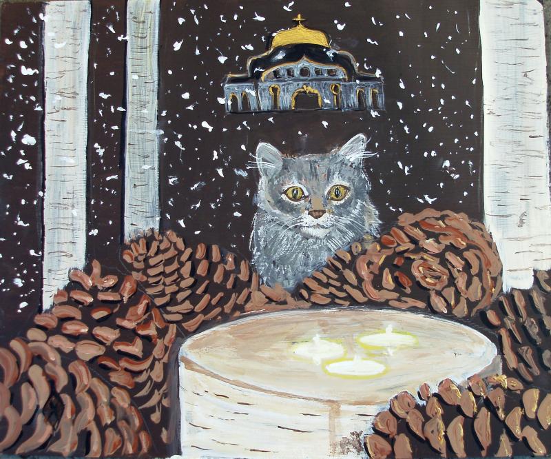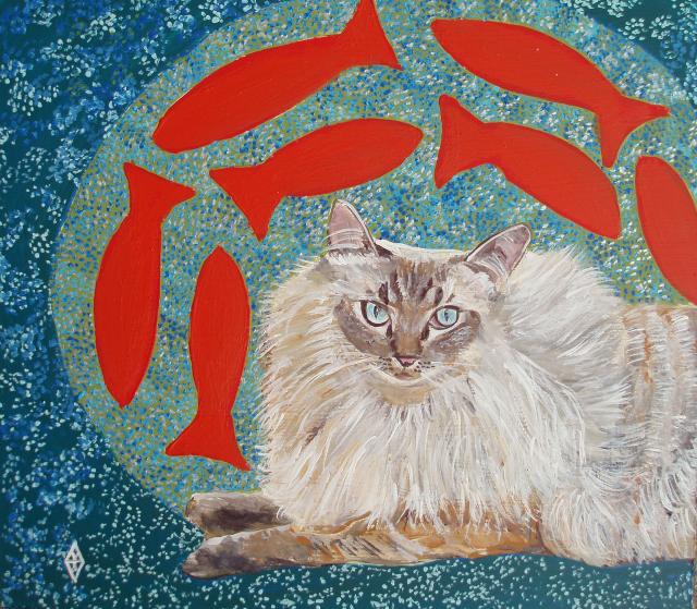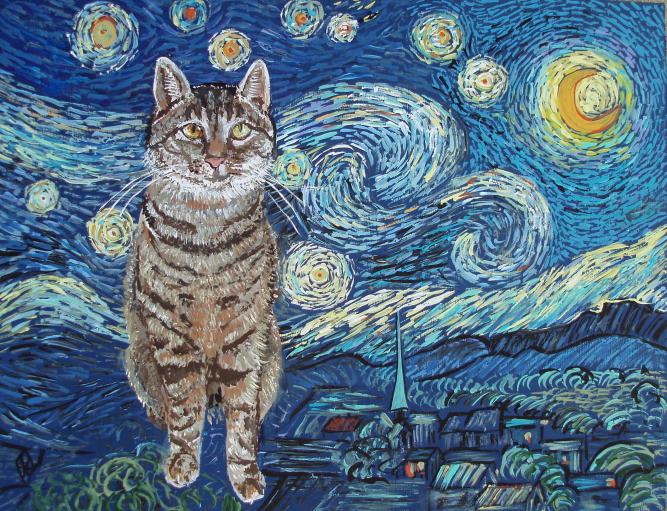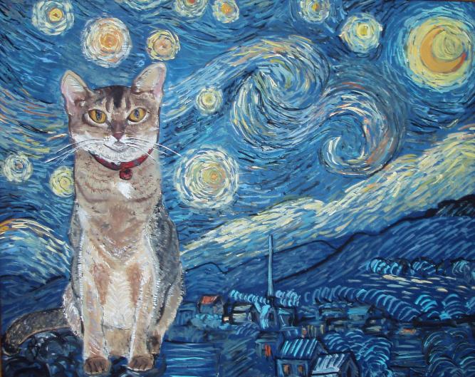 Starry Night,cat portrait,custom,Judy Henn,Lambertville NJ,contemporary art,Robins Egg Gallery,gifts