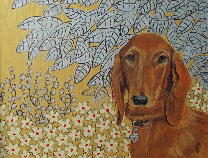 Dachsund painting_dog portrait painting_JUdy Henn_amarillus painting