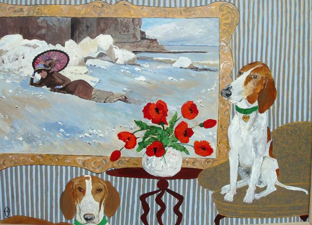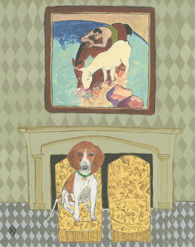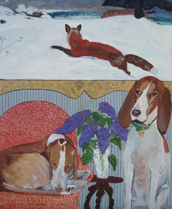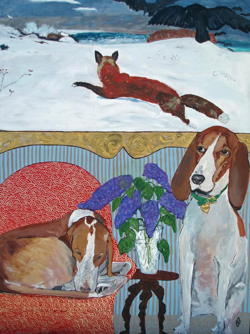 Foxhound,fox.hound,Judy Henn,Lambertville,NJ,artist,Winslow Homer,The Fox Hunt,Let Sleeping Dogs Lie,Dog Art today,Robins Egg Gallery,custom,commission,gifts,mugs,t-shirts,totes