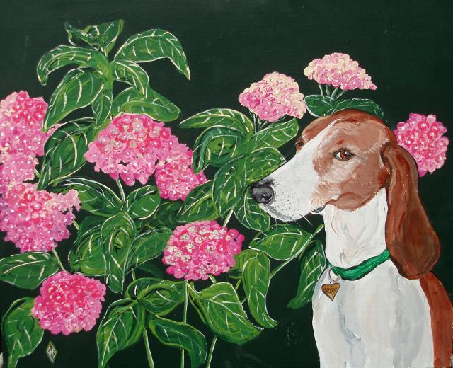 Beagle,Judy Henn,custom portrait,dog painting,Lambertville NJ,Robins Egg Gallery,contemporary art,gifts