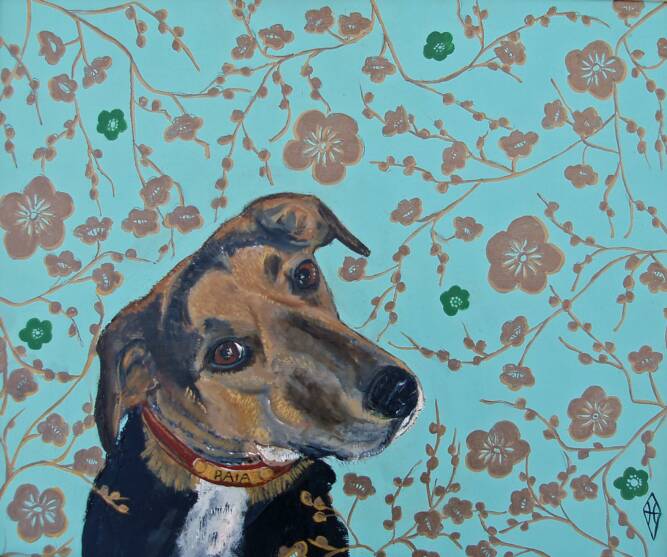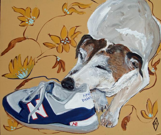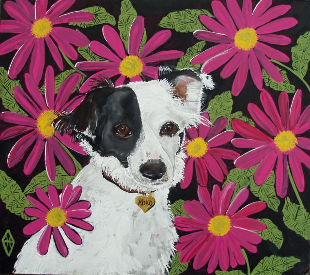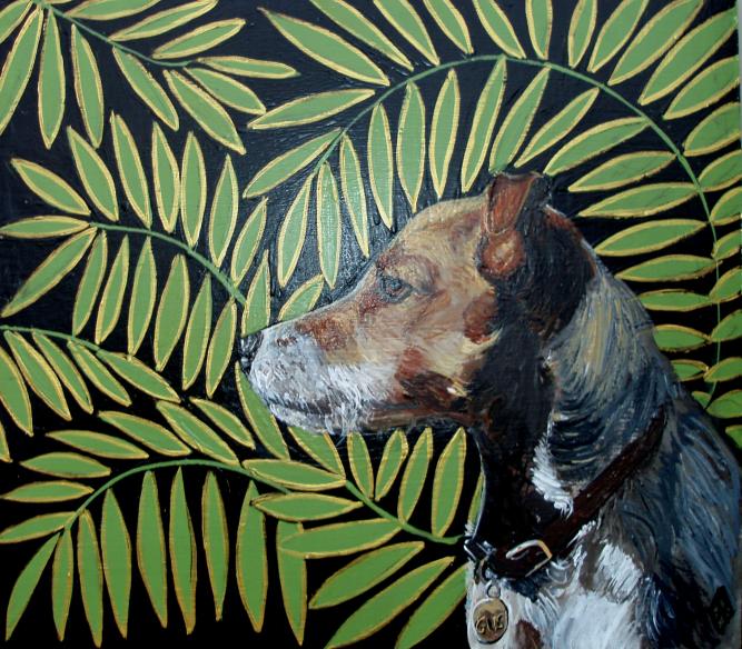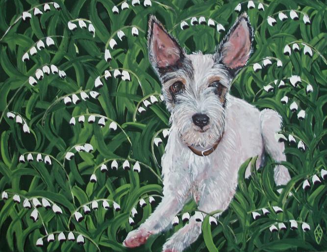 Jack Russell Terrier,Lilly of the Valley,unique,dog portraits,Judy Henn,Robins Egg Gallery,dog painting,contemporary art,NJ,gallery