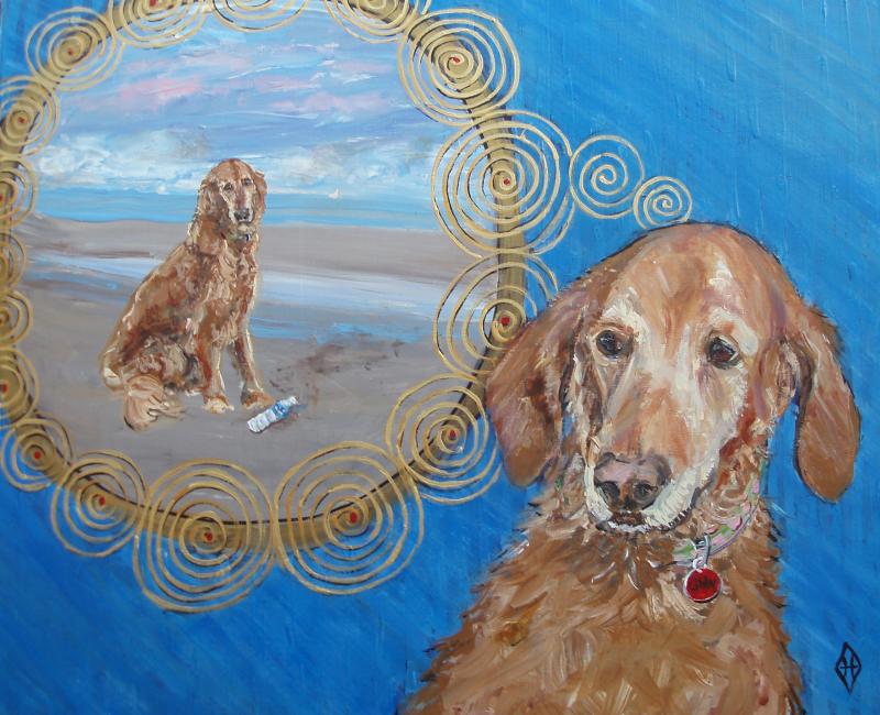 Golden,Golden Retriever,Judy Henn,custom,dog portrait,Lambertville, NJ,Robins Egg Gallery,contemporary art,painting,pet,gifts