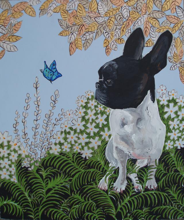 Frenchie,French Bulldog,white,Judy Henn,custom,pet,dog,portrait,Lambertville,NJ,Robins Egg Gallery,commission,contemporary art,gifts