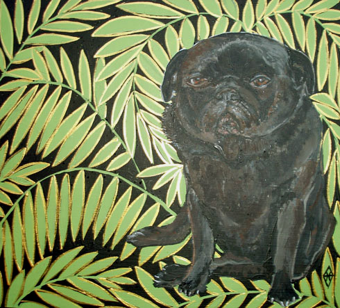 Black Pug_pug painting_Judy Henn_original dog paintings_dog artist