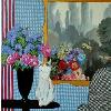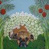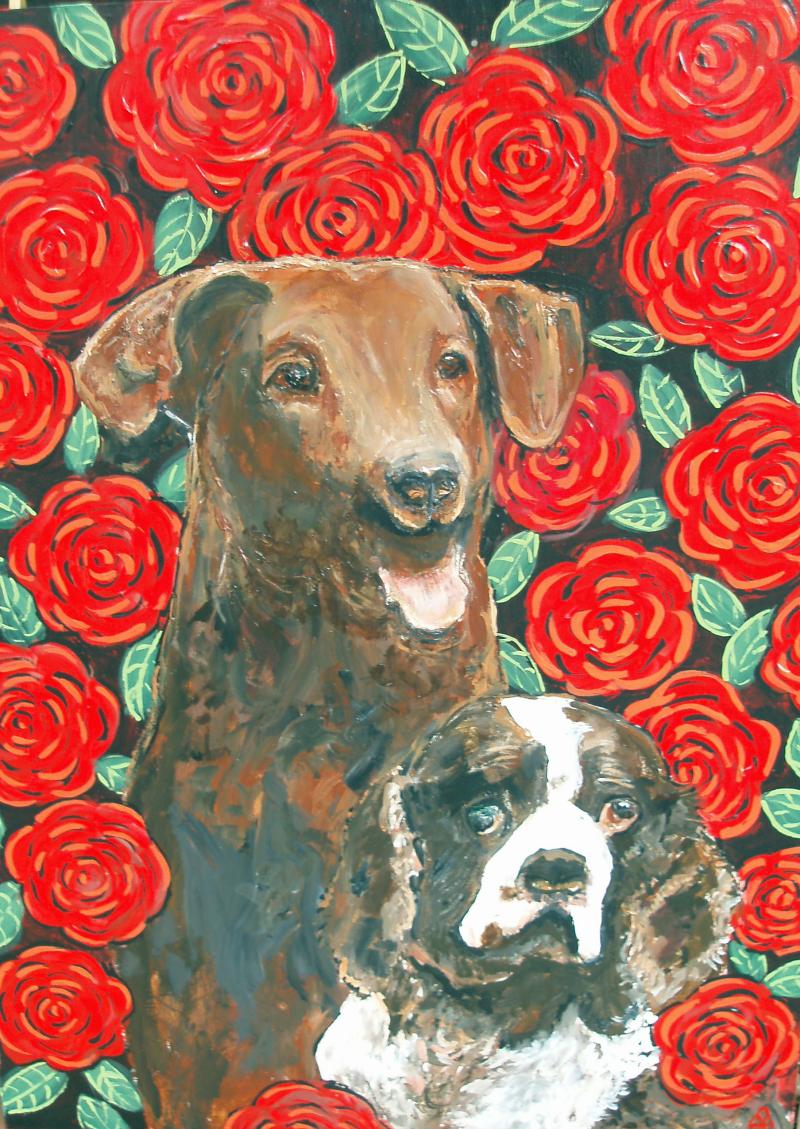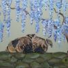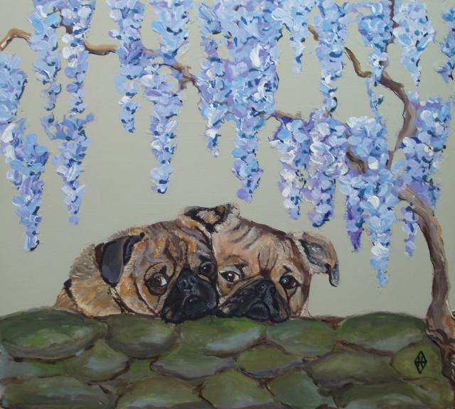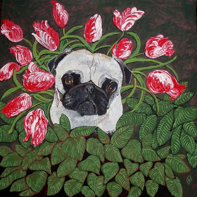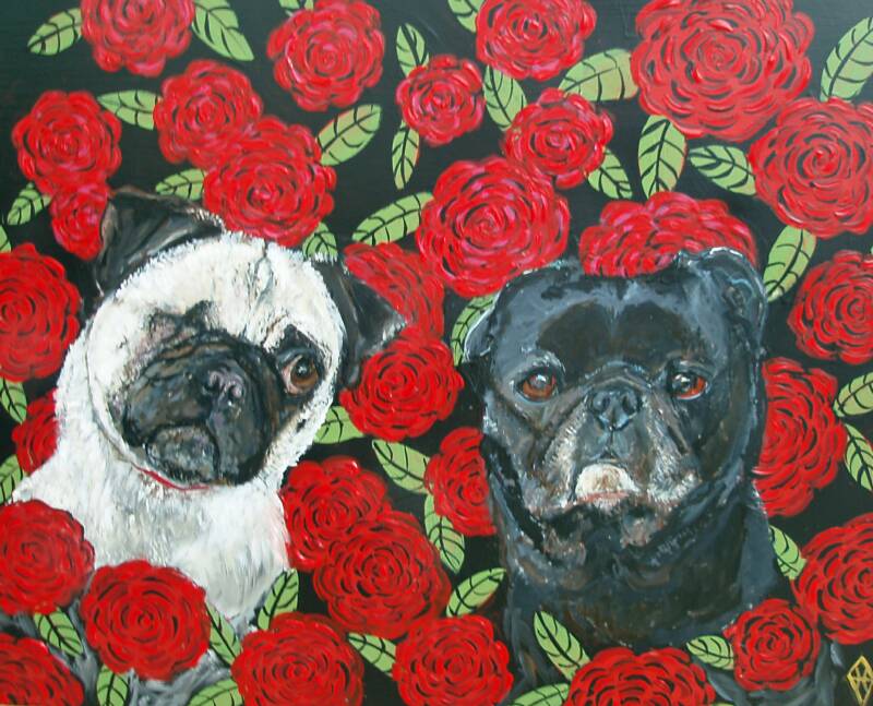 Pug,roses,custom,dog,painting,portrait,Judy Henn,Lambertville,NJ,contemporary,artist,Dog art today,gifts,commissions