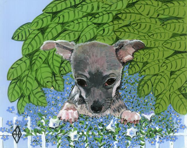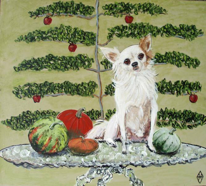 Chihuahua,hot peppers,dog, portrait,custom,painting,Judy Henn,Lambertville,NJ,artist,Dog Art Today,contemporary art,gifts